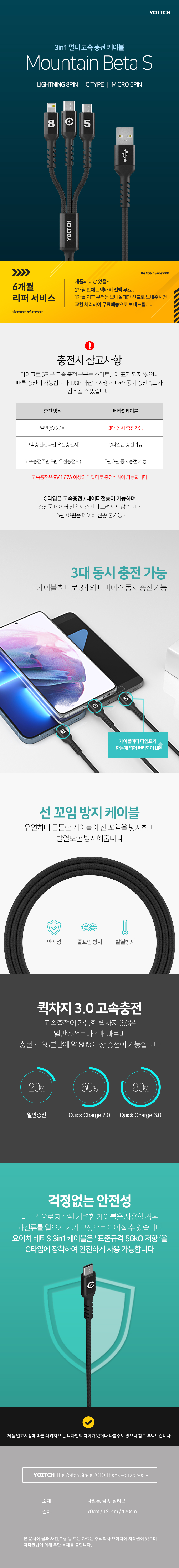 [¿äÀÌÄ¡] º£Å¸S 3in1 ¸ÖƼÄÉÀ̺í (70cm/120cm/170cm) (µ¥ÀÌÅÍ/ÃæÀü °â¿ë) 1P