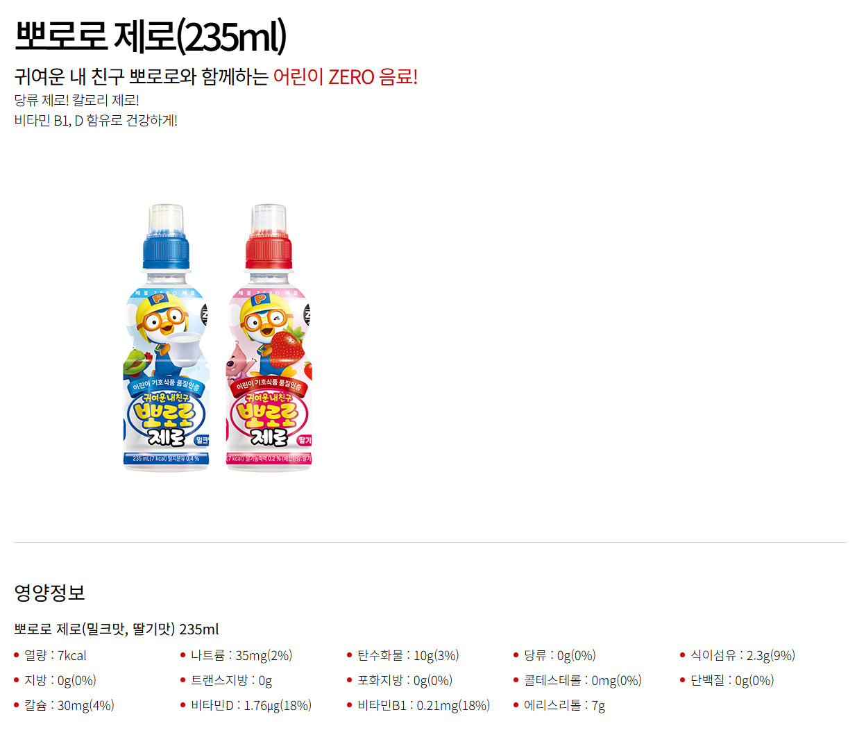 »óǰ¸í [ÆÈµµ] »Ç·Î·Î Á¦·Î (¹ÐÅ©/µþ±â) 235ml 24°³ÀÔ 1BOX