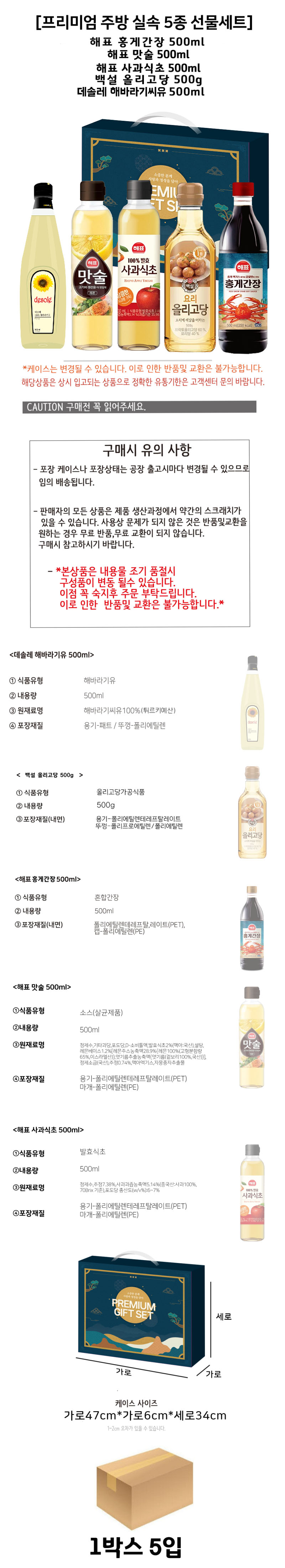 ÇØÇ¥ È«°Ô°£Àå 500ml + ÇØÇ¥ ¸À¼ú 500ml + ÇØÇ¥ »ç°ú½ÄÃÊ 500ml + ¹é¼³ ¿Ã¸®°í´ç 500g + µ¥¼Ö·¹ ÇØ¹Ù¶ó±â¾¾À¯ 500ml