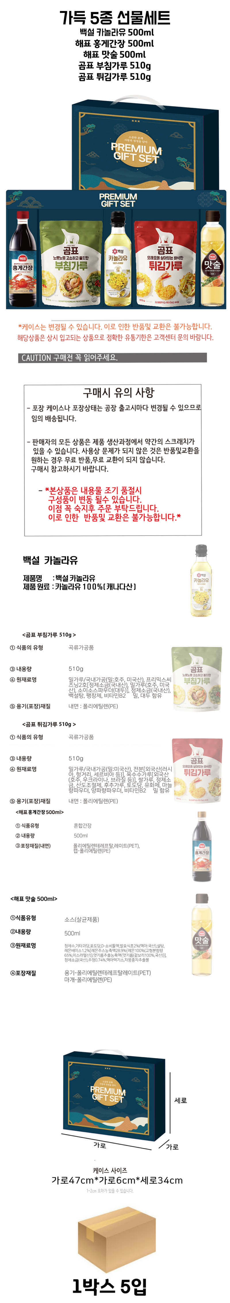 ¹é¼³ Ä«³î¶óÀ¯ 500ml + ÇØÇ¥ È«°Ô°£Àå 500ml + ÇØÇ¥ ¸À¼ú 500ml + °õÇ¥ ºÎħ°¡·ç 510g + °õÇ¥ Æ¢±è°¡·ç 510g