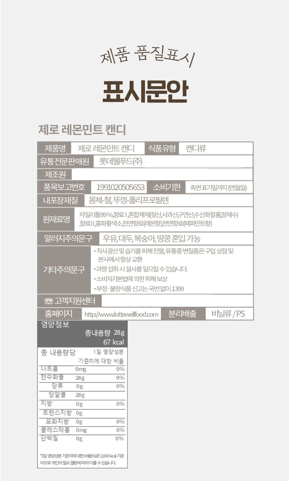 »óǰ¸í [·Ôµ¥] Á¦·Î ĵµð 28g ƾÄÉÀ̽º 1P