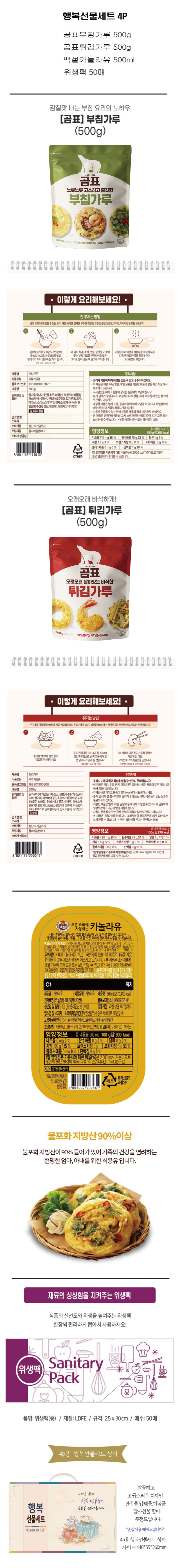 ¹é¼³ Ä«³î¶óÀ¯ 500ml + °õÇ¥ ºÎħ°¡·ç 500g + Æ¢±è°¡·ç 500g + À§»ýÆÑ 50¸Å